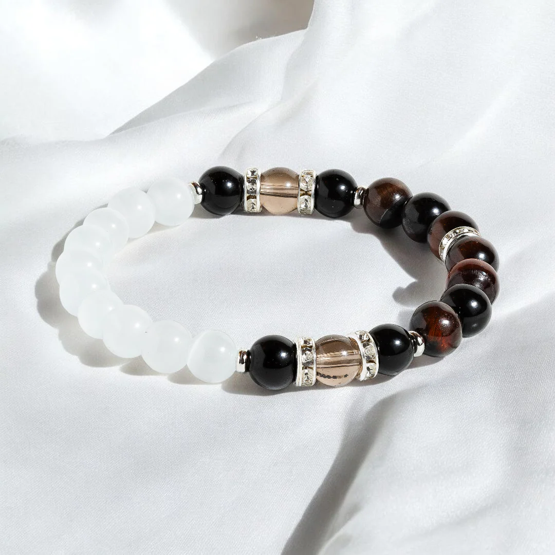 Embrace the energizing blend of Red Tiger's Eye and the grounding essence of Selenite with this 'Energized Grace' Bracelet, designed to infuse your day with focused energy and elegant balance, enhanced by delicate Selenite stones.